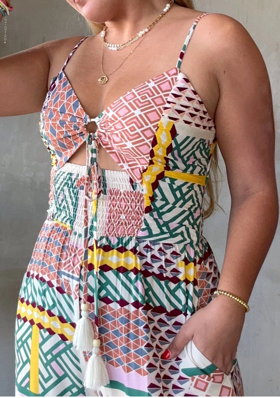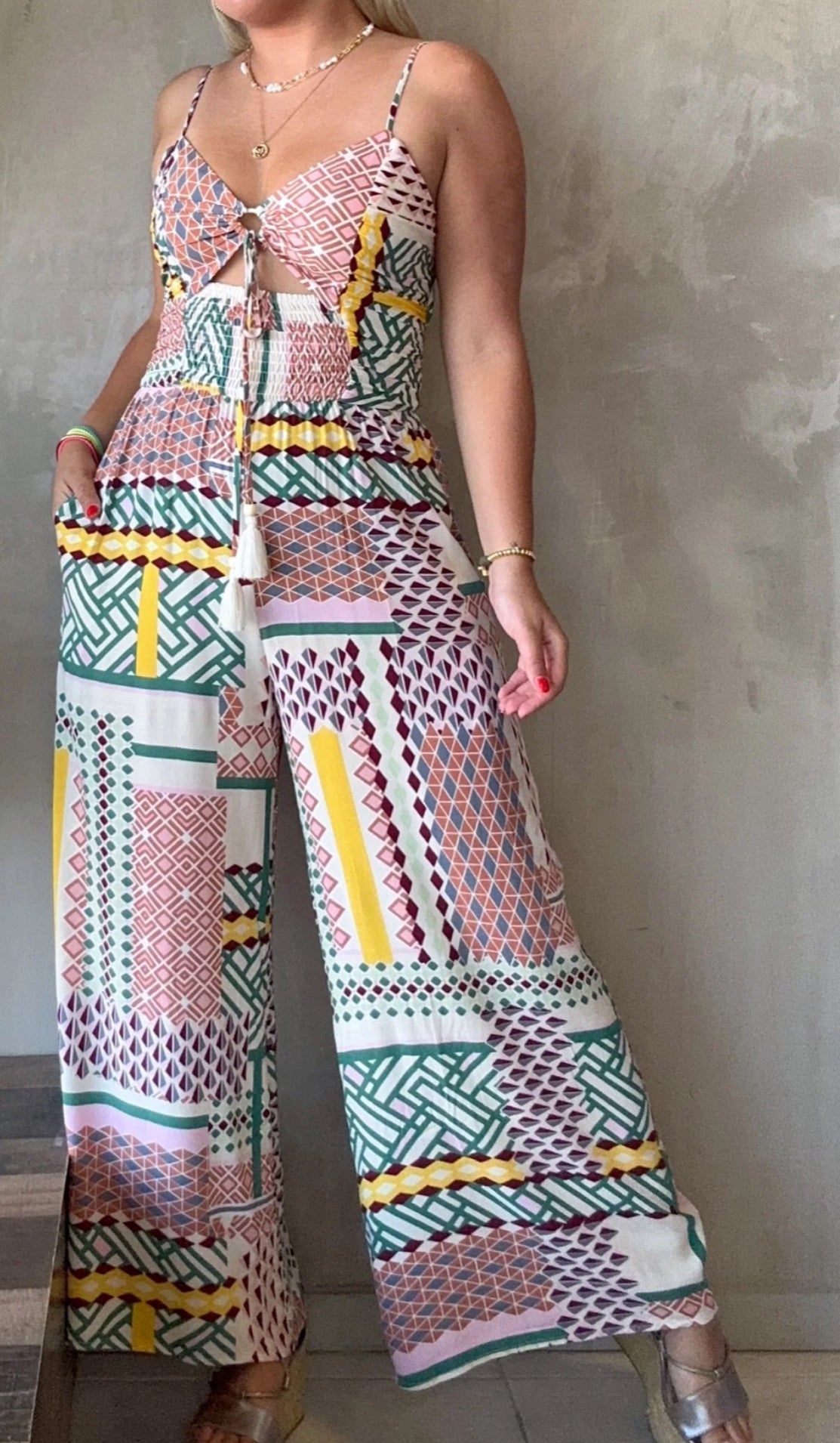 Bellisimo Jumpsuit tela multicolor en colores suaves