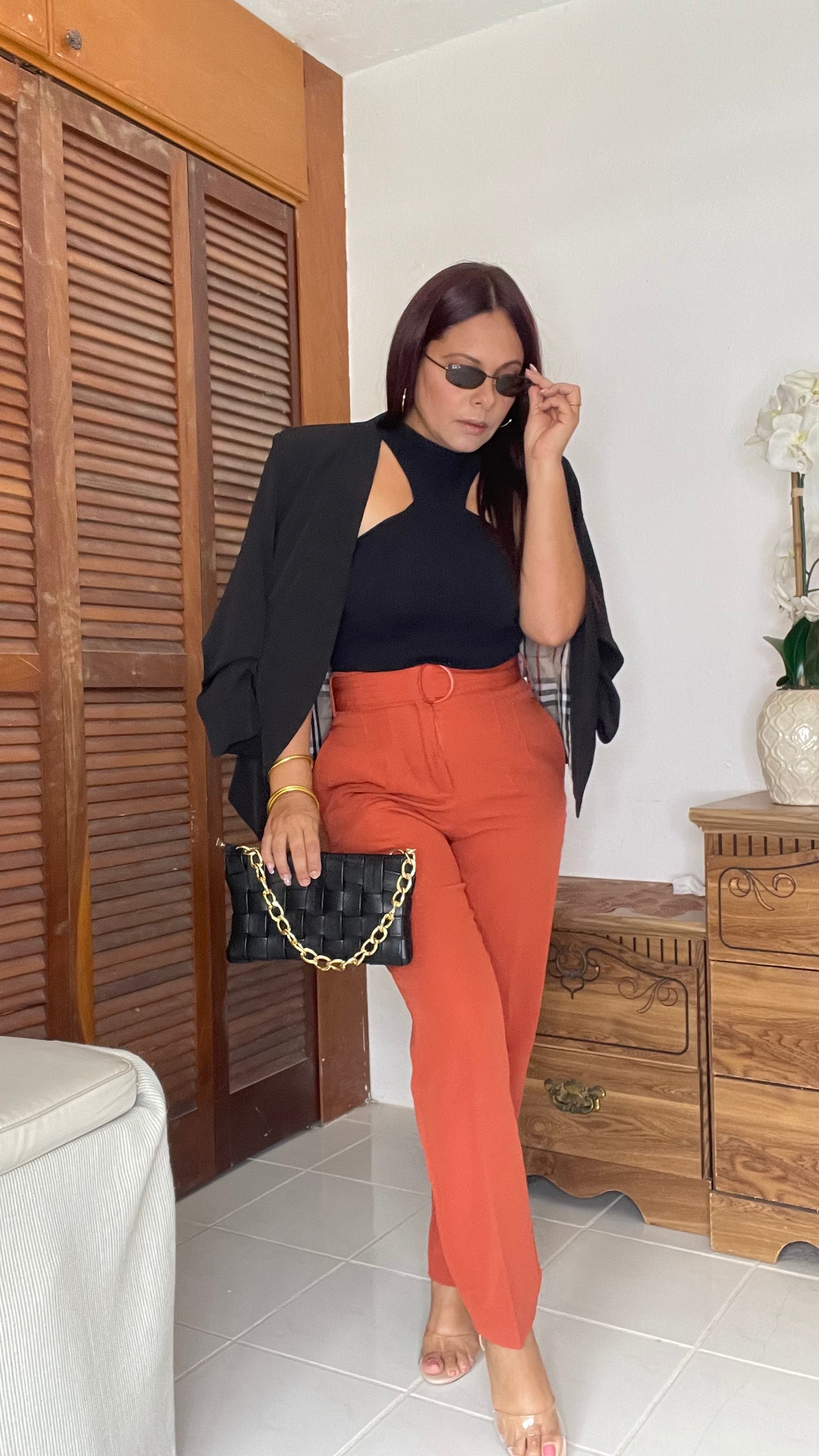 Elegante Blazer color negro, forrado por dentro y sus mangas son fruncidas.