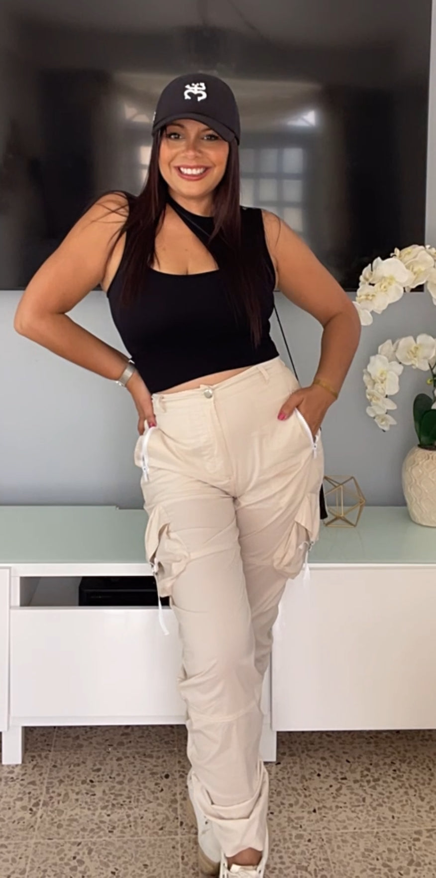 Bello Cargo Pants con bolsillos funcionales con detalles en blanco