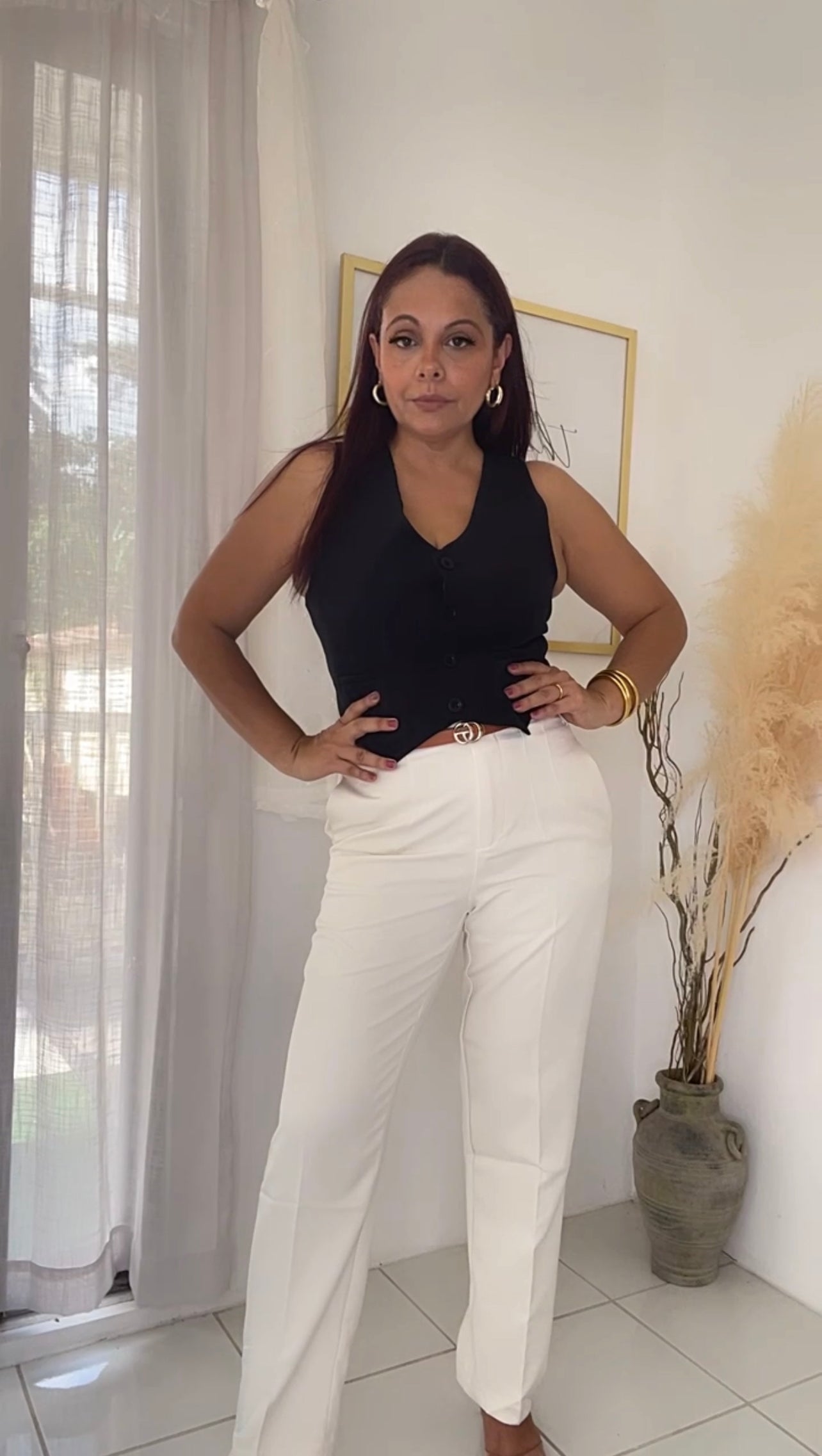 Hermoso pantalon en color crema. Es alto en la cintura . Incluye correa en tela.