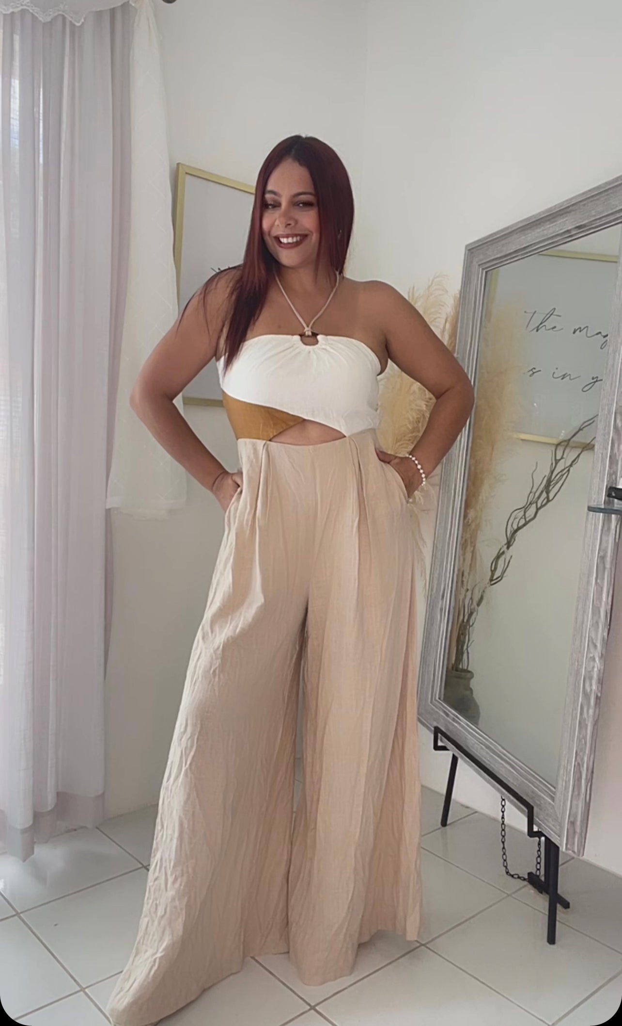 Hermoso jumpsuit en los bellos colores: blanco , crema y marron e.