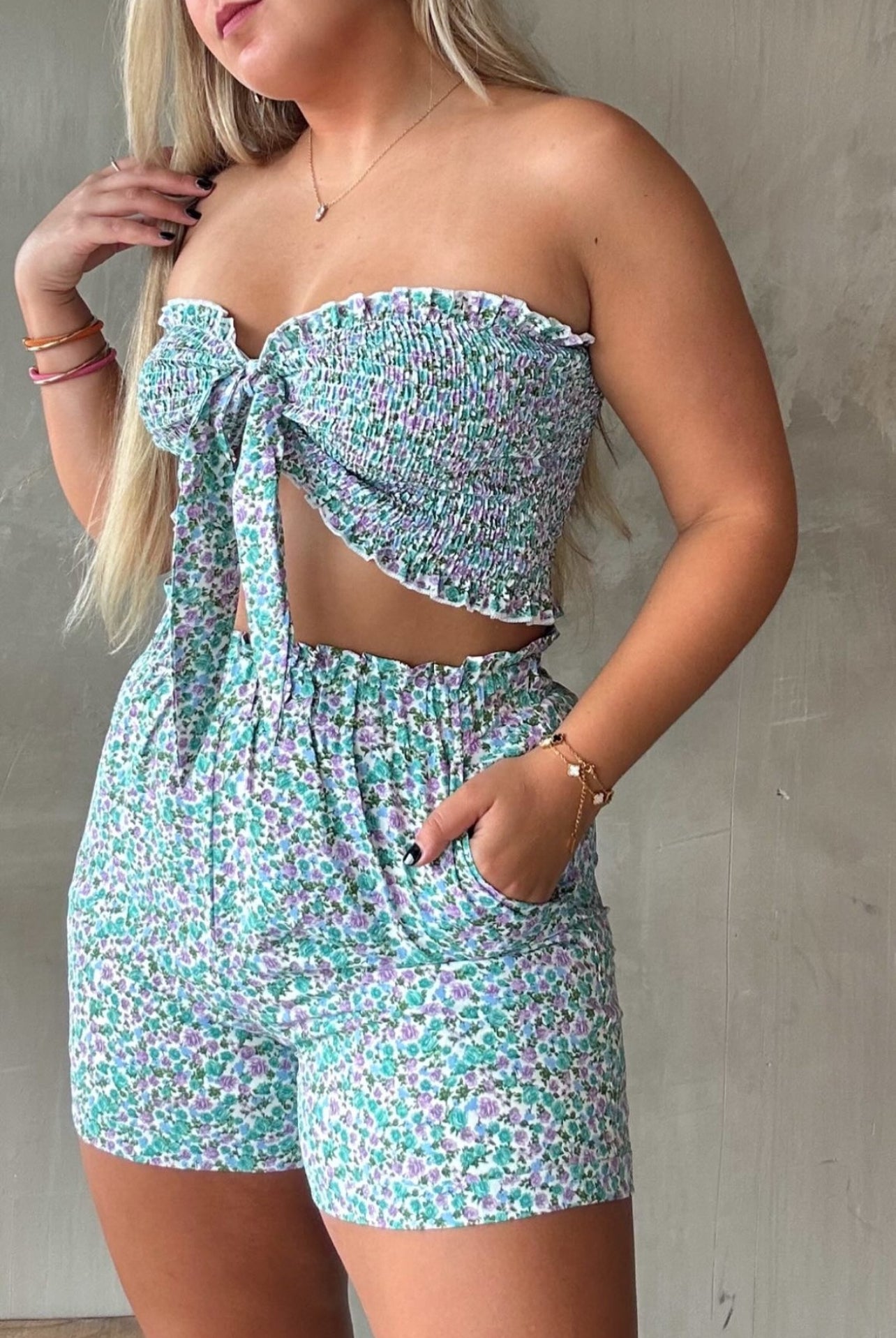 Tiene elastico en la crop top y en la cintura