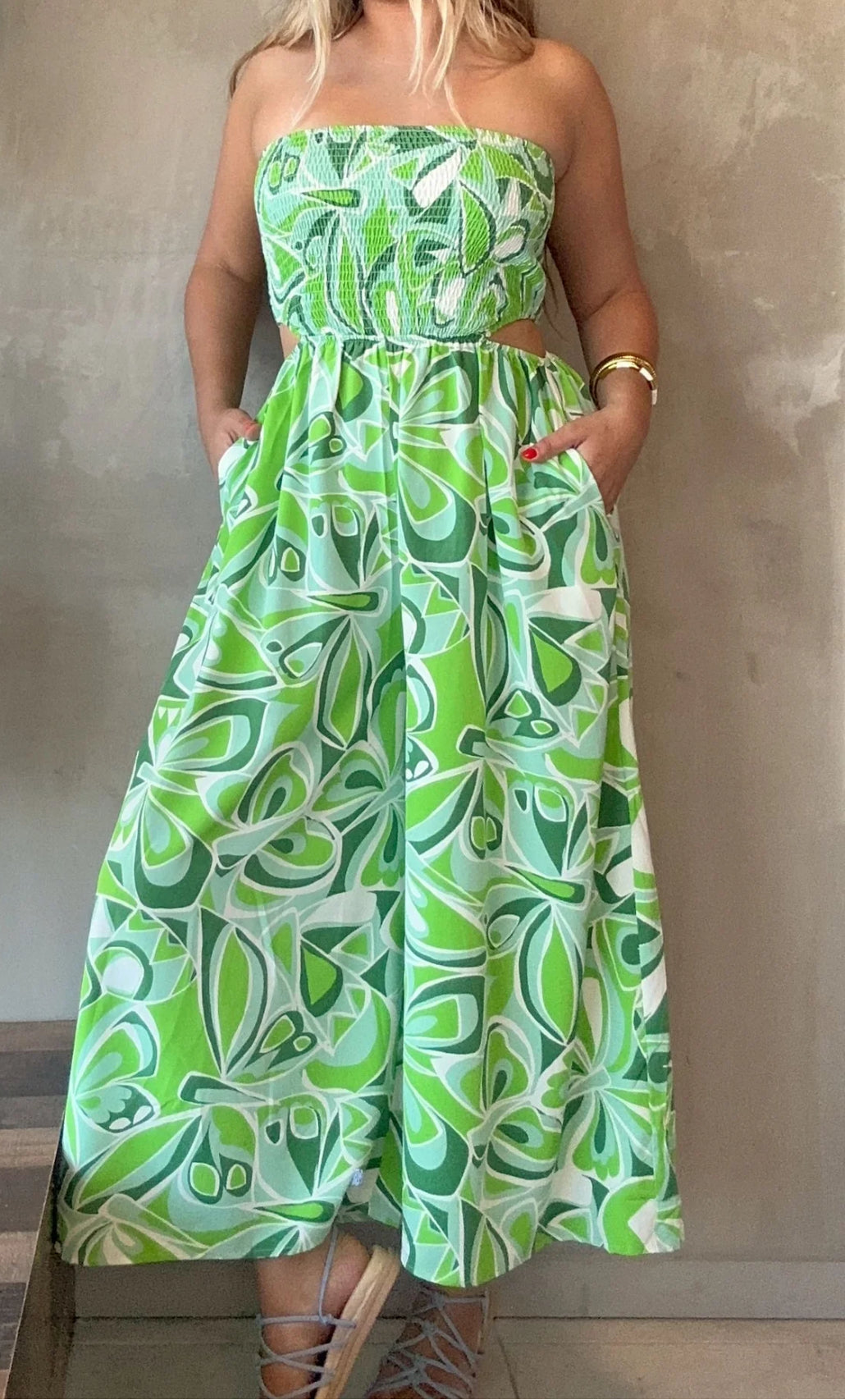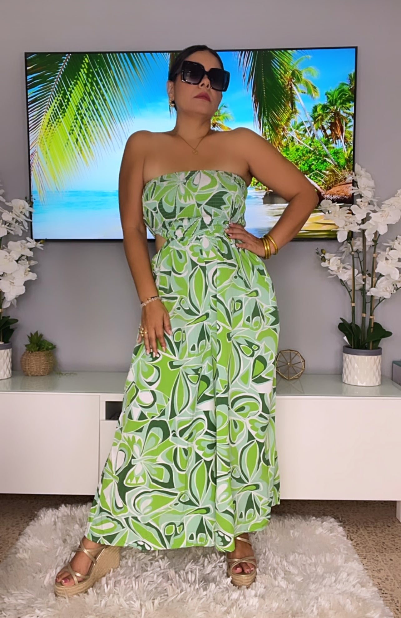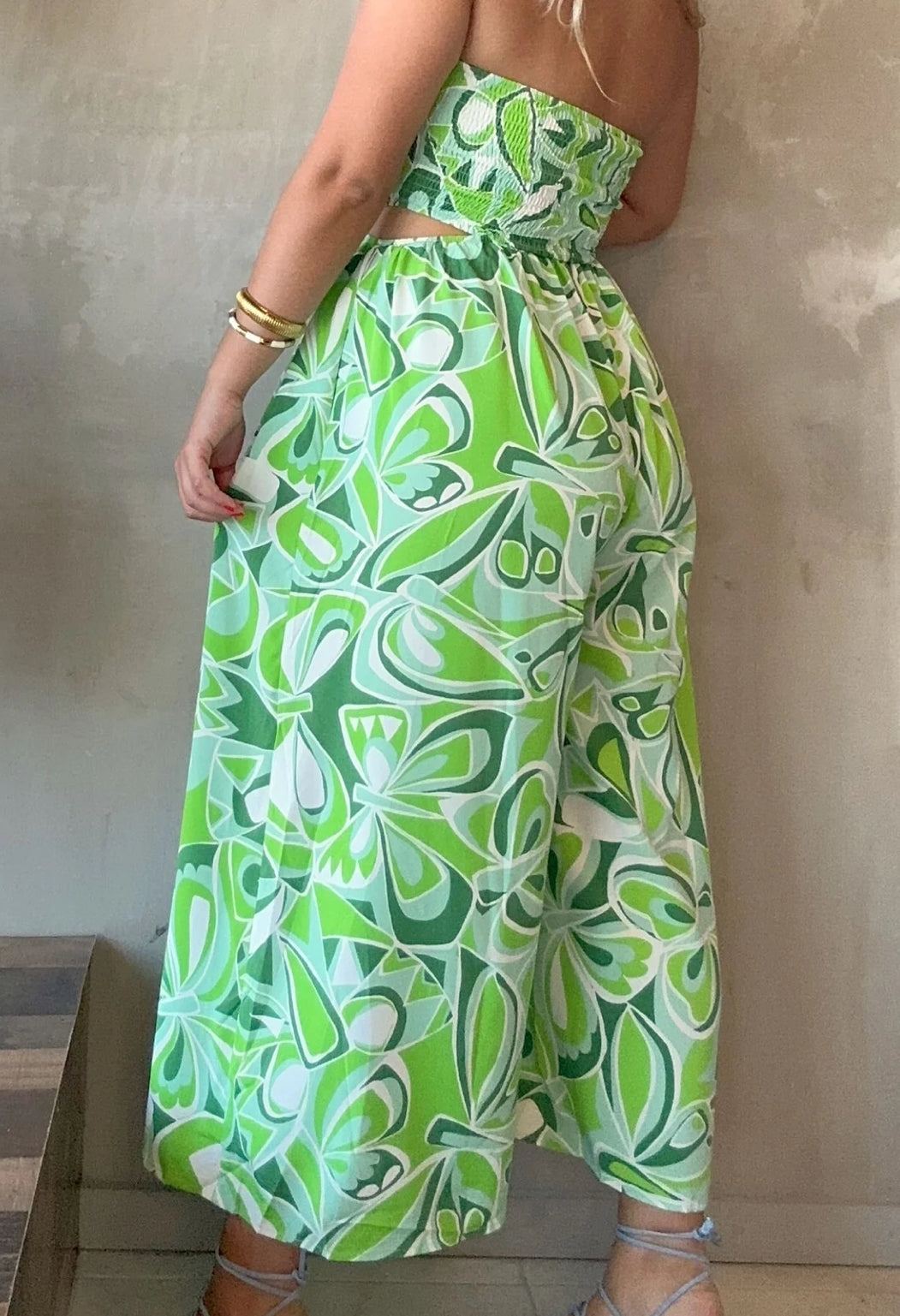 Bello Jumpsuit en tonalidades azules, verdes y blanco
