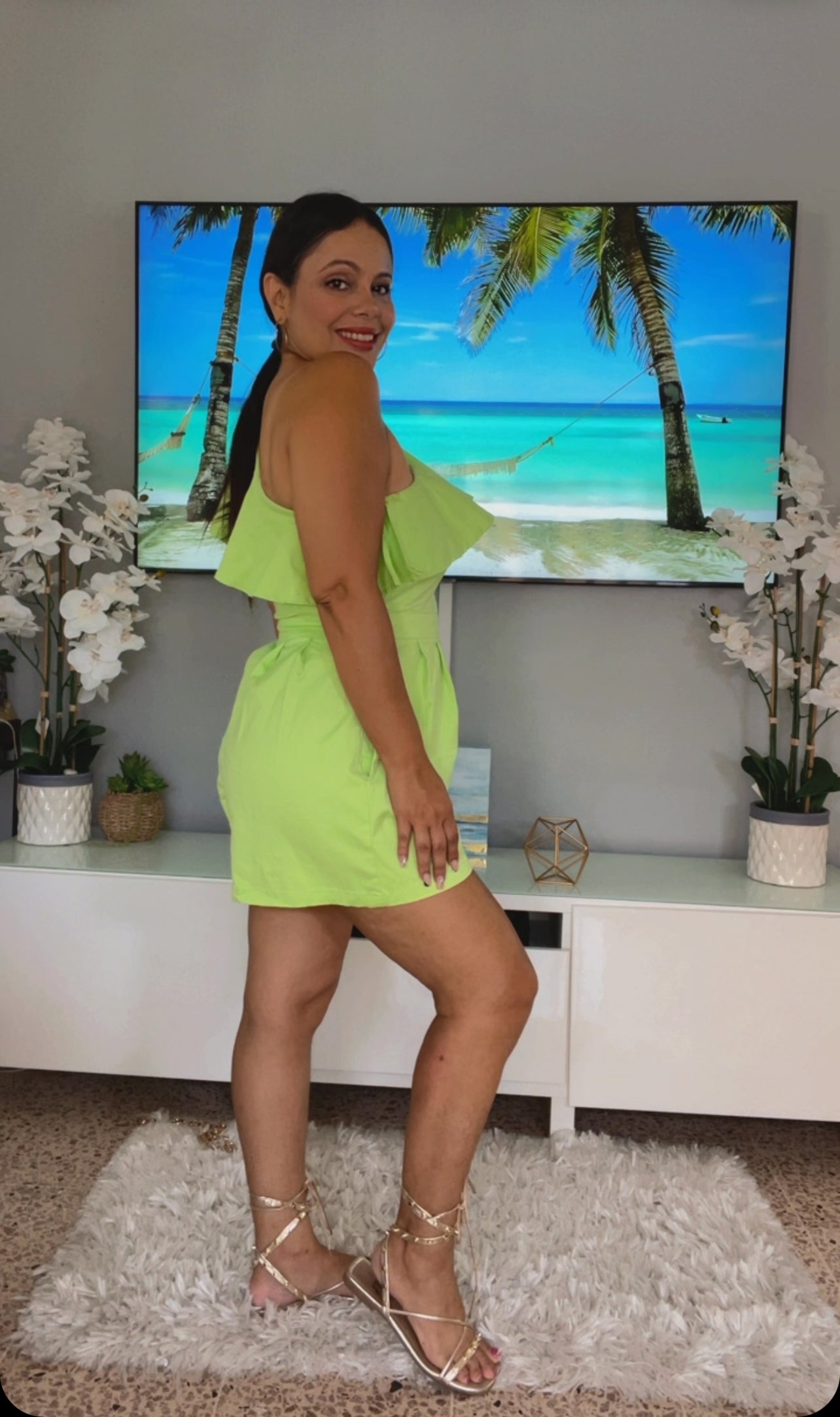 Hermoso y fresco Romper en color verde Lima con volante