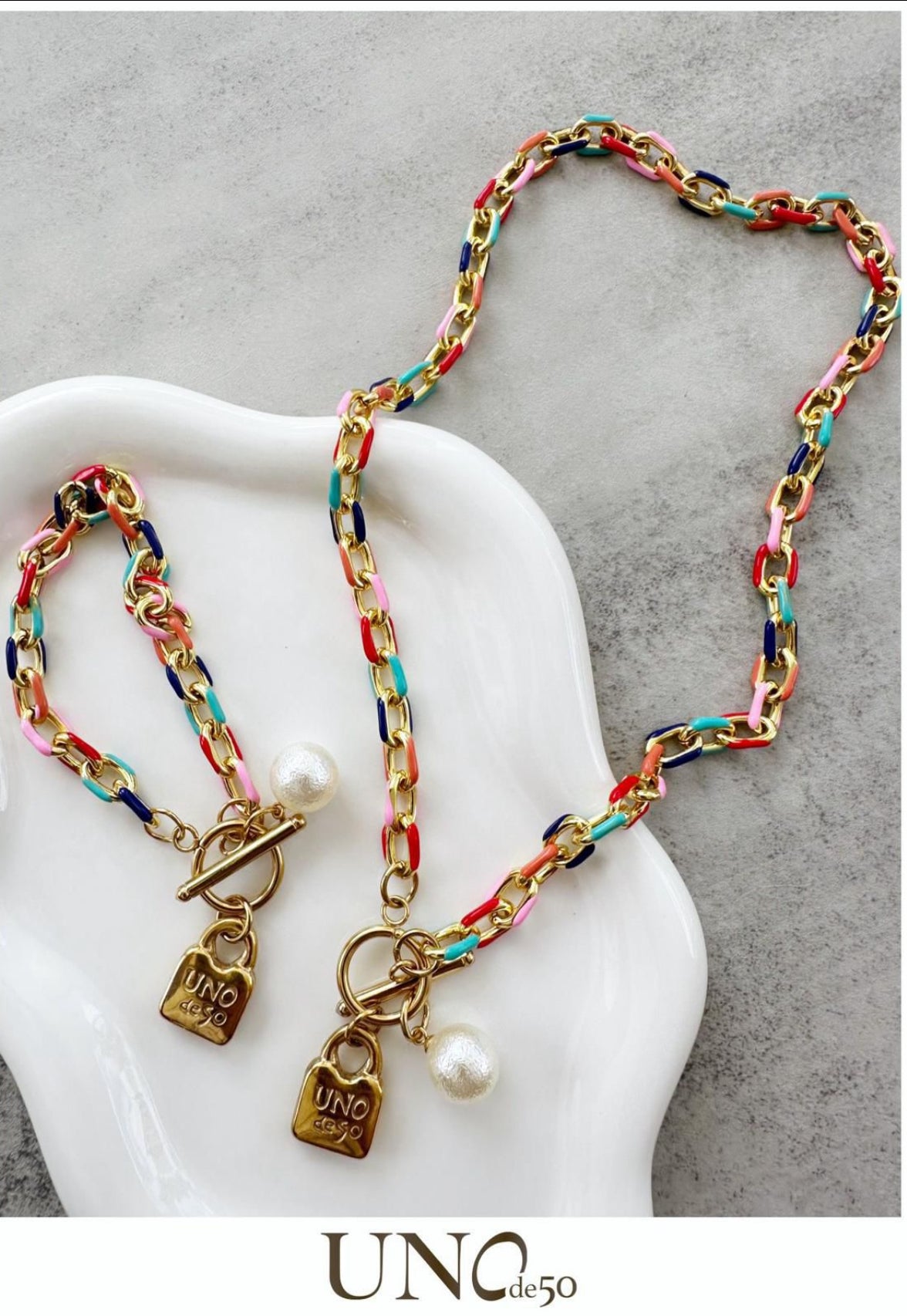 Hermosos set de cadena y collar en stainless steel con bano de oro,