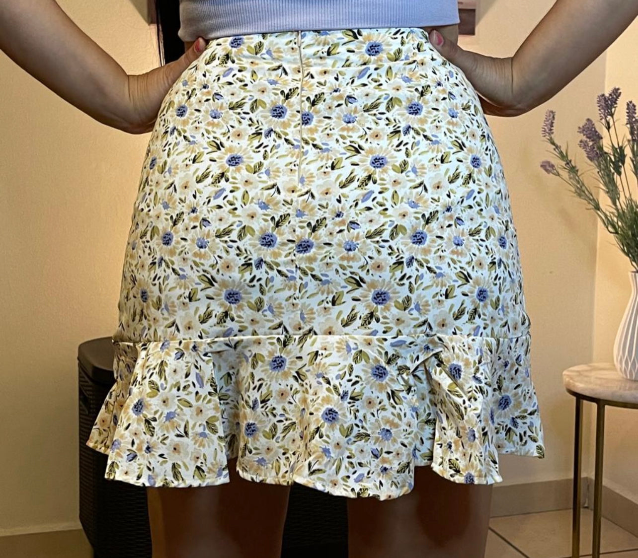 Hemosa falda con volante en tonos pasteles super chic para el verano.
