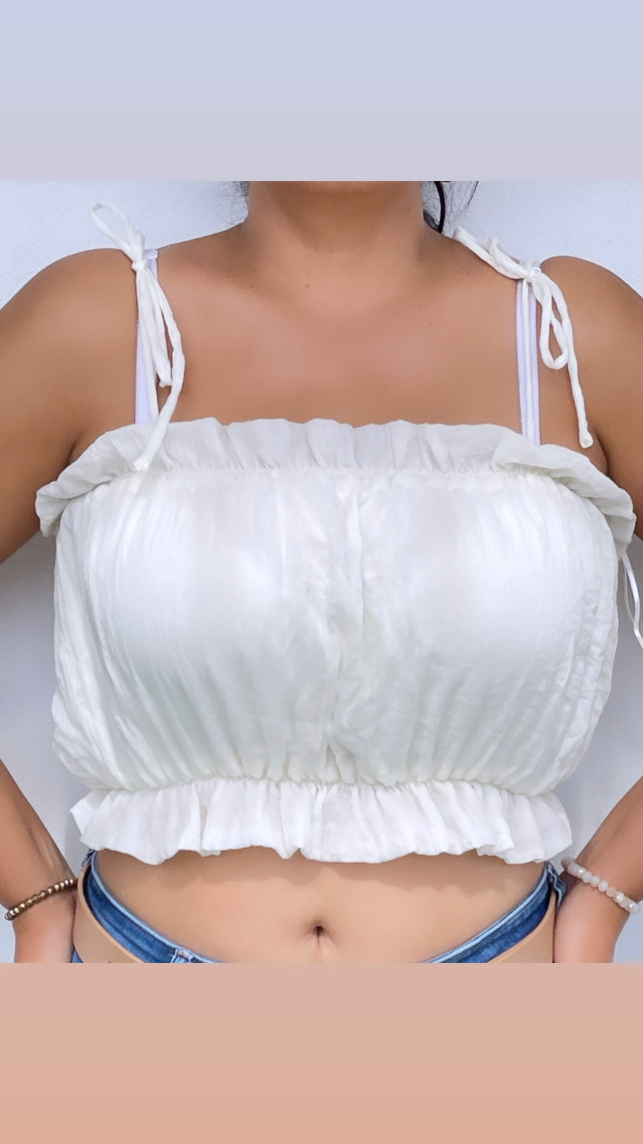 Hermosa top Color crema fresquita para usar con mahones o falditas. Manguiloos se ajustan.
